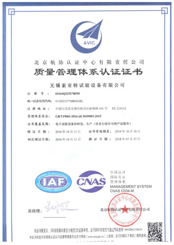 質(zhì)量管理體系認(rèn)證證書(GB/T19001-2008)
